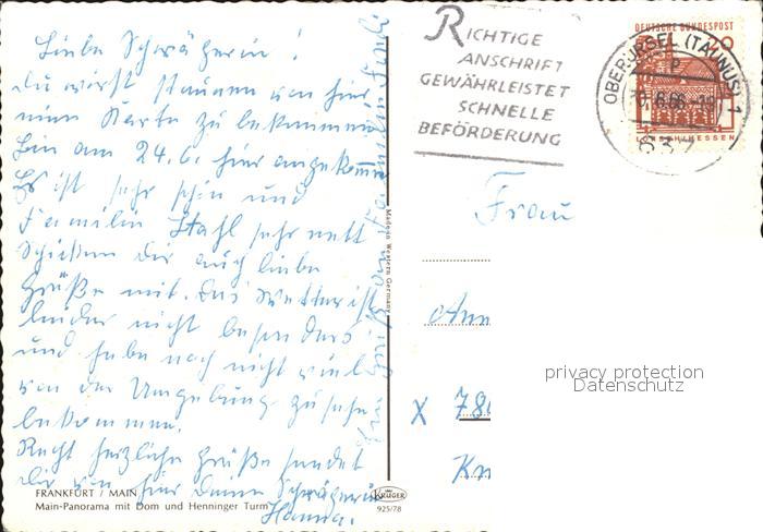 alte Postkarte Frankfurt Main Main Dom Henninger Turm postalisch gelaufen Erhaltung siehe scans