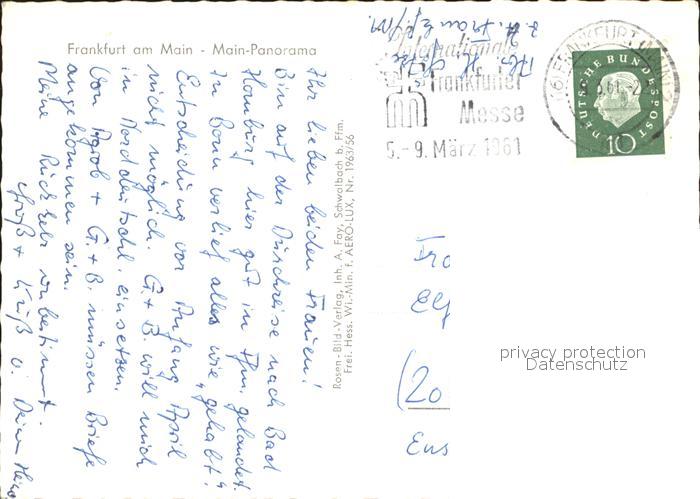 72083874 alte Postkarte Frankfurt Main Main Panorama postalisch gelaufen KatCode: 11110006412000