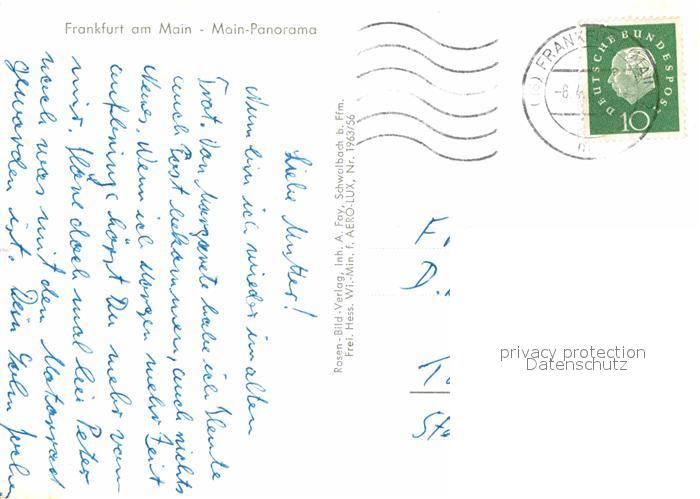 72702308 alte Postkarte Frankfurt Main Main Panorama Fliegeraufnahme postalisch gelaufen Erhaltung siehe scans [FriedD77] KatCode: 11110006412000