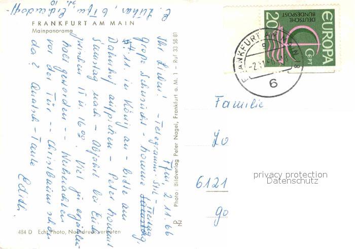 72775635 alte Postkarte Frankfurt Main Mainpanorama postalisch gelaufen Erhaltung siehe scans [KathaD81] KatCode: 11110006412000