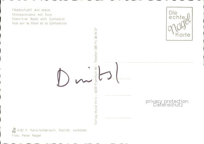 72268545 Frankfurt Main Mainpanorama Dom postalisch nicht gelaufen Erhaltung siehe scans KatCode: 11110006412000