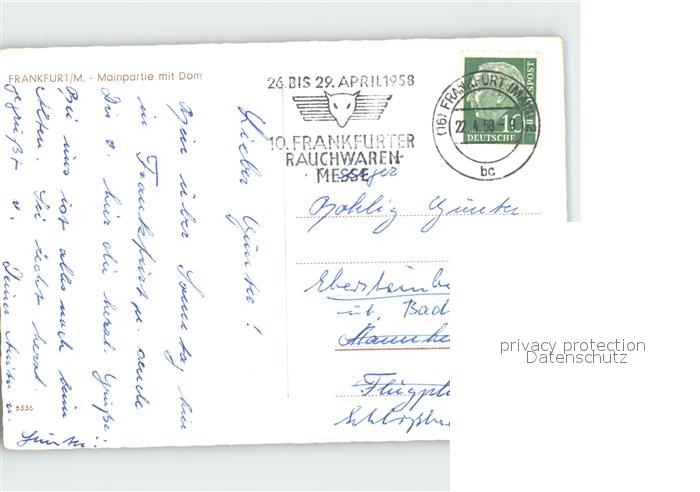 72108579 alte Postkarte Frankfurt Main Mainpartie Dom postalisch gelaufen Erhaltung siehe scans KatCode: 11110006412000