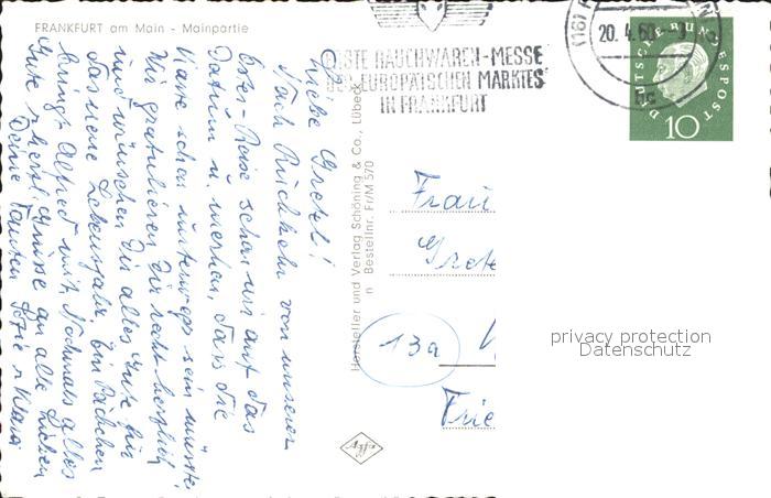 71926499 alte Postkarte Frankfurt Main Mainpartie Dom postalisch gelaufen Erhaltung siehe scans KatCode: 11110006412000