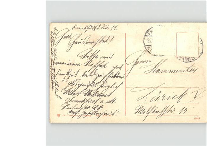 71389340 alte Postkarte Frankfurt Main Mainpartie Eiserner Steg Bruecke Kirche Schiff postalisch gelaufen gute Erhaltung KatCode: 11110006412000