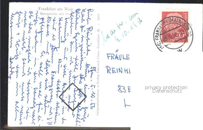 72142255 alte Postkarte Frankfurt Main Mainpartie mit Dom postalisch gelaufen Erhaltung siehe scans KatCode: 11110006412000