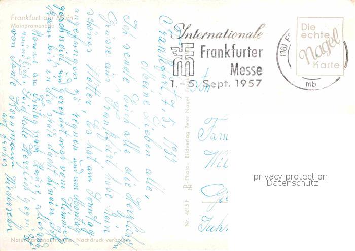 72800771 alte Postkarte Frankfurt Main Mainpromenade Bootsanleger Dampfer postalisch gelaufen Erhaltung siehe scans [FriedD77] KatCode: 11110006412000