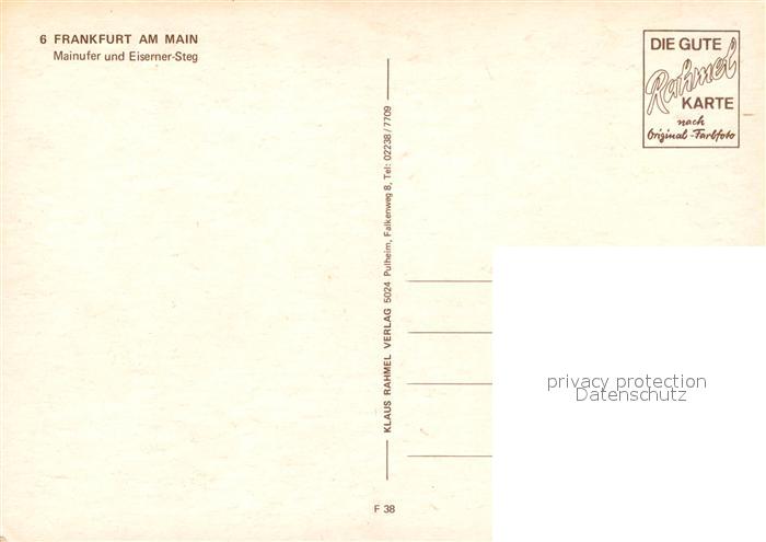 73071474 Frankfurt Main Mainufer Eiserner Steg postalisch nicht gelaufen Erhaltung siehe scans [NatalD47] KatCode: 11110006412000