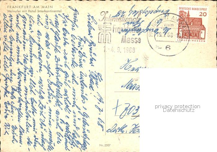72557214 alte Postkarte Frankfurt Main Mainufer Hotel Interkontinental postalisch gelaufen Erhaltung siehe scans [KathaD79] KatCode: 11110006412000