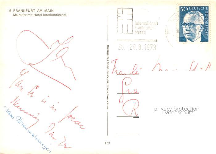 73089108 alte Postkarte Frankfurt Main Mainufer Hotel Interkontinental postalisch gelaufen Erhaltung siehe scans [PaolaD17] KatCode: 11110006412000