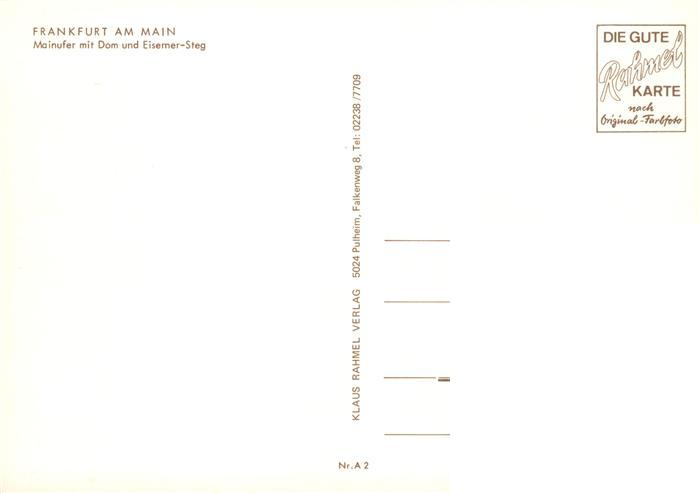 73888649 Frankfurt Main Mainufer mit Dom und Eiserner Steg postalisch nicht gelaufen Erhaltung siehe scans [WerneD78] KatCode: 11110006412000