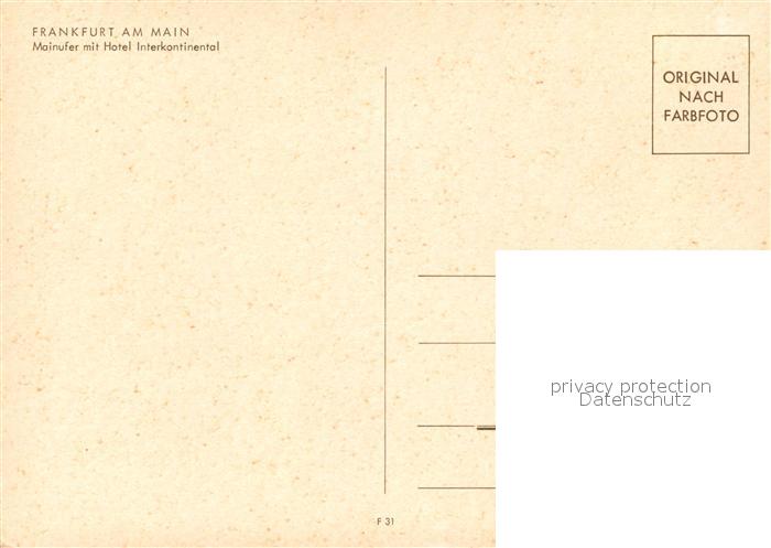 73574428 Frankfurt Main Mainufer mit Hotel Interkontinental postalisch nicht gelaufen Erhaltung siehe scans [FriedD77] KatCode: 11110006412000