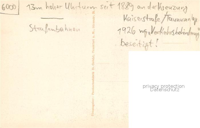 73702285 Frankfurt Main Manskopfs Uhrturm mit Schauspielhaus und Strassenbahnen postalisch nicht gelaufen Erhaltung siehe scans [LiesaD40] KatCode: 11110006412000