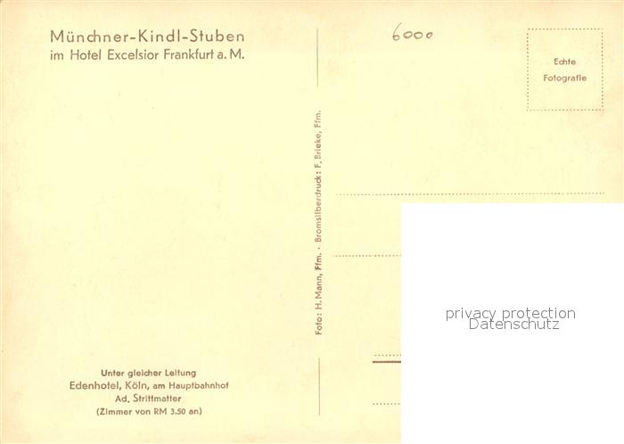 43287539 Frankfurt Main Muenchner Kindl Stuben im Hotel Excelsior postalisch nicht gelaufen Erhaltung siehe scans [FriedD77] KatCode: 11110006412000