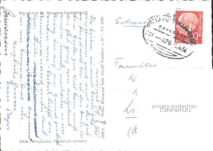 72319727 alte Postkarte Frankfurt Main Neues Goethehaus postalisch gelaufen Erhaltung siehe scans KatCode: 11110006412000