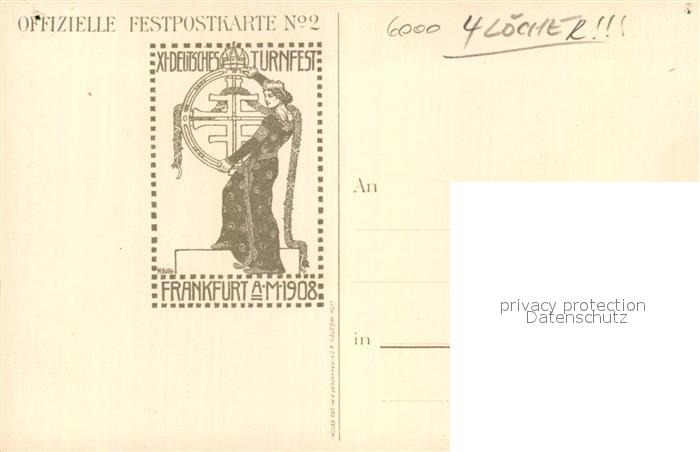 43286188 Frankfurt Main Offizielle Festpostkarte XI Deutsches Turnfest postalisch nicht gelaufen Erhaltung siehe scans [FriedD77] KatCode: 11110006412000