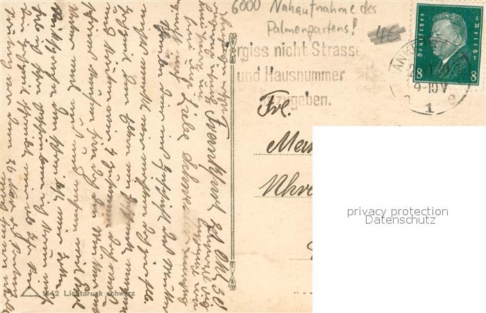 73693301 alte Postkarte Frankfurt Main Palmengarten postalisch gelaufen Erhaltung siehe scans [WerneD78] KatCode: 11110006412000