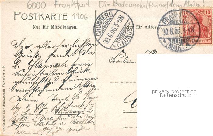 73693267 alte Postkarte Frankfurt Main Panorama Badeanstalten postalisch gelaufen Erhaltung siehe scans [WerneD78] KatCode: 11110006412000