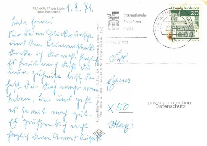 72694110 alte Postkarte Frankfurt Main Panorama Fliegeraufnahme postalisch gelaufen Erhaltung siehe scans [FriedD77] KatCode: 11110006412000