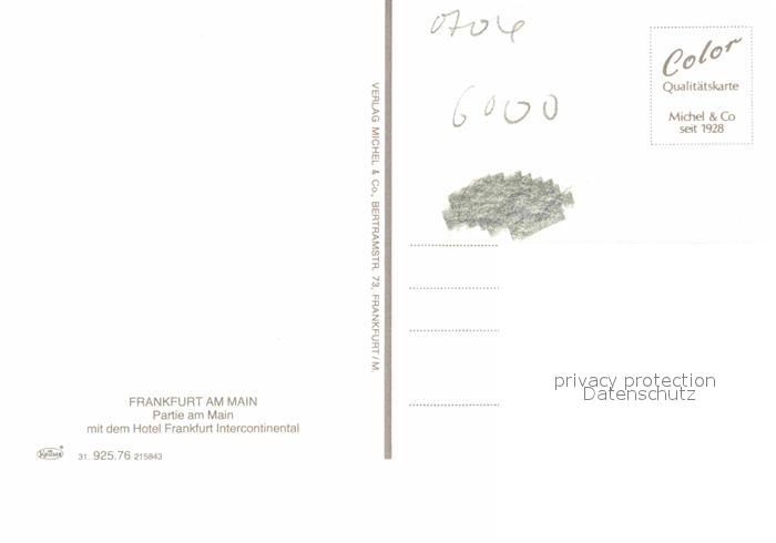 72839607 Frankfurt Main Partie am Main Hotel Intercontinental postalisch nicht gelaufen Erhaltung siehe scans [AndreD76] KatCode: 11110006412000