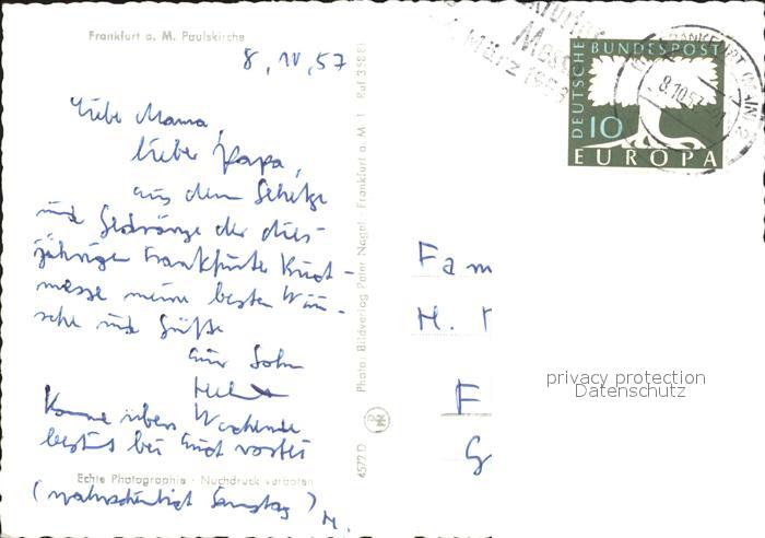 72028368 alte Postkarte Frankfurt Main Paulskirche postalisch gelaufen KatCode: 11110006412000