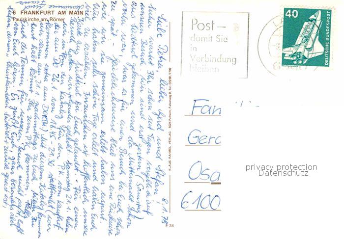 72772299 alte Postkarte Frankfurt Main Paulskirche am Roemer postalisch gelaufen Erhaltung siehe scans [AndreD76] KatCode: 11110006412000