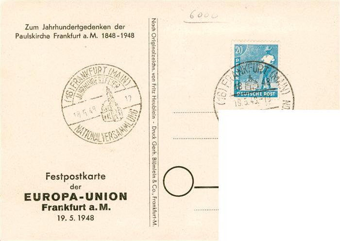 73887368 alte Postkarte Frankfurt Main Paulskirche Zeichnung postalisch gelaufen Erhaltung siehe scans [WerneD78] KatCode: 11110006412000