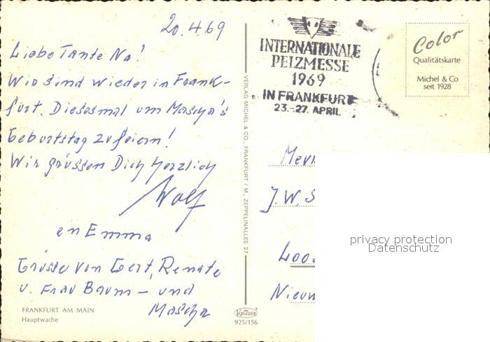 72304191 alte Postkarte Frankfurt Main Pelzmesse Hauptwache postalisch gelaufen Erhaltung siehe scans KatCode: 11110006412000
