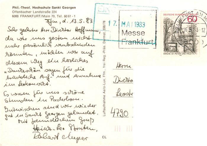 73877536 alte Postkarte Frankfurt Main Phil Theol Hochschule St Georgen Fliegeraufnahme postalisch gelaufen Erhaltung siehe scans [WerneD78] KatCode: 11110006412000