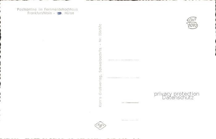 72092522 Frankfurt Main Postkantine Fernmeldedachhaus postalisch nicht gelaufen Erhaltung siehe scans KatCode: 11110006412000