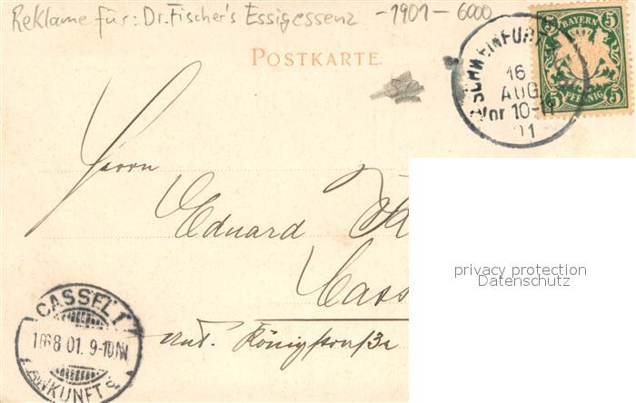 73702288 alte Postkarte Frankfurt Main Reklame fuer Dr. Fischers Essigessenz postalisch gelaufen Erhaltung siehe scans [LiesaD40] KatCode: 11110006412000