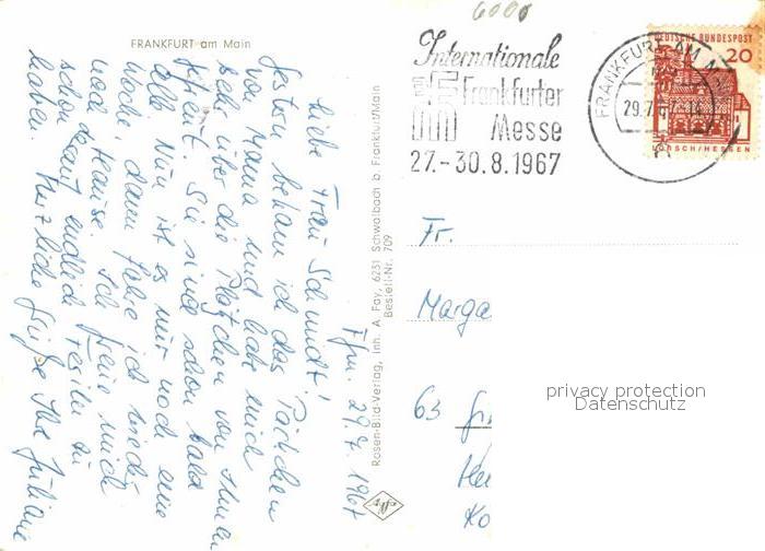72867668 alte Postkarte Frankfurt Main Roemer Paulskirche Paulsplatz Rathaus Roemerhoefchen postalisch gelaufen Erhaltung siehe scans [WerneD78] KatCode: 11110006412000