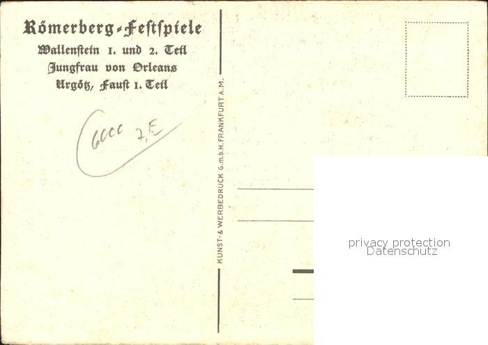 41551704 Frankfurt Main Römerberg Festspiele Wallenstein Jungfrau von Orleans Faust Künstlerkarte Erich Fornoff KatCode 11110006412000