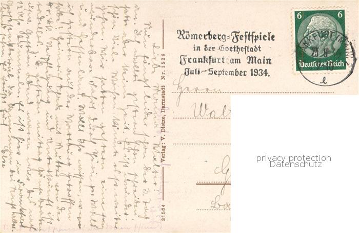 73779482 alte Postkarte Frankfurt Main Roemerberg Marktplatz mit Nicolaikirche postalisch gelaufen Erhaltung siehe scans [FriedD77] KatCode: 11110006412000