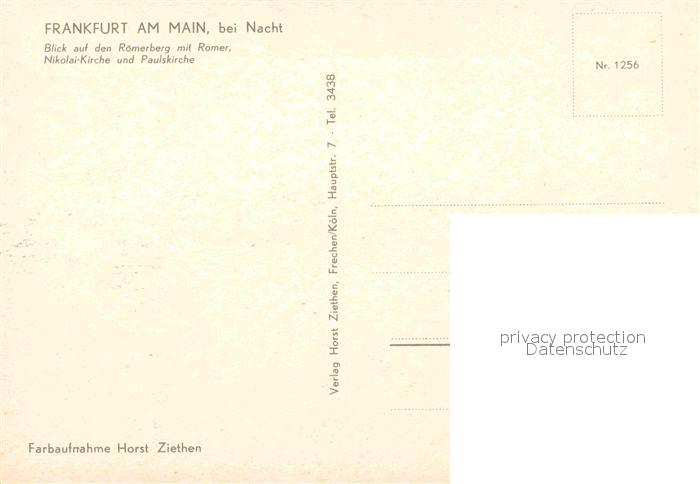72773222 Frankfurt Main Roemerberg mit Roemer Nikolai Kirche und Paulskirche bei Nacht postalisch nicht gelaufen Erhaltung siehe scans [FriedD77] KatCode: 11110006412000