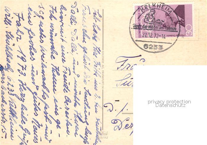 73127439 alte Postkarte Frankfurt Main Rossmarkt Hauptwache Theaterinsel Roemer Hauptbahnhof Henninger Turm Main Bruecke postalisch gelaufen Erhaltung siehe scans [FriedD77] KatCode: 11110006412000