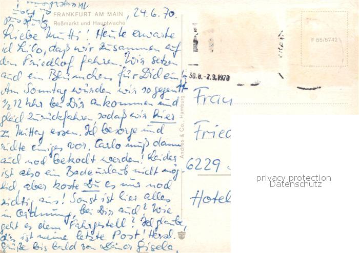 73125674 alte Postkarte Frankfurt Main Rossmarkt und Hauptwache postalisch gelaufen Erhaltung siehe scans [LiesaD40] KatCode: 11110006412000