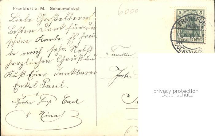 71832536 alte Postkarte Frankfurt Main Schaumainkai postalisch gelaufen Erhaltung siehe scans KatCode: 11110006412000