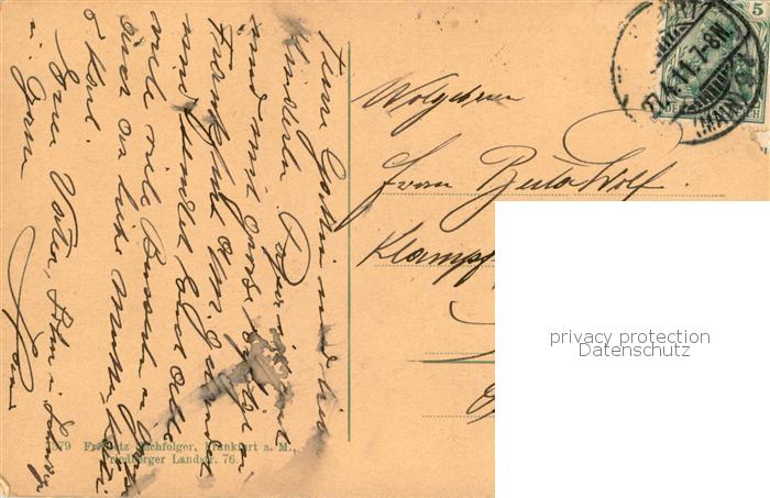 73779487 alte Postkarte Frankfurt Main Schuetzenbrunnen Statue postalisch gelaufen Erhaltung siehe scans [FriedD77] KatCode: 11110006412000