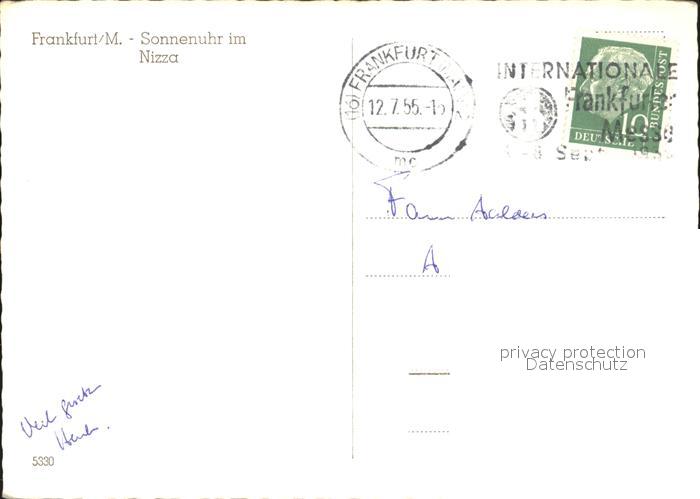 72134347 alte Postkarte Frankfurt Main Sonnenuhr im Nizza postalisch gelaufen KatCode: 11110006412000