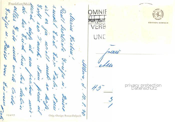 72884206 alte Postkarte Frankfurt Main Stadtmotiv Illustration postalisch gelaufen Erhaltung siehe scans [WerneD78] KatCode: 11110006412000