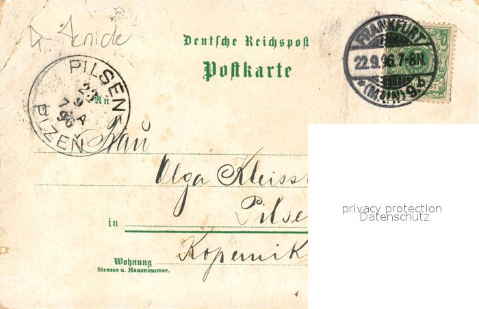 43285535 alte Postkarte Frankfurt Main Stadtpanorama Blick ueber den Main Dom Opernhaus Litho Deutsche Reichspost postalisch gelaufen Erhaltung siehe scans [FriedD77] KatCode: 11110006412000