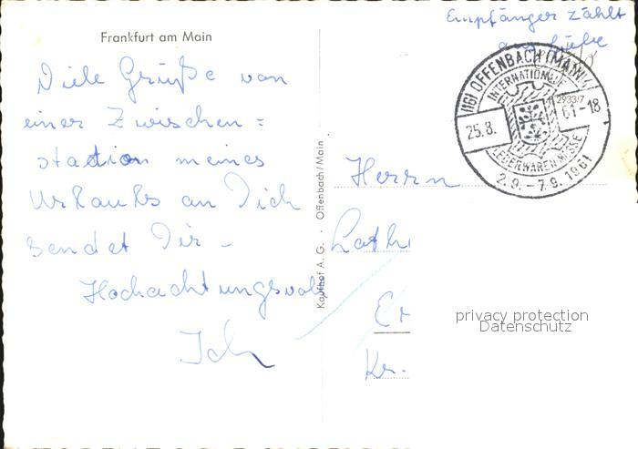 72454762 alte Postkarte Frankfurt Main Teilansicht postalisch gelaufen Erhaltung siehe scans KatCode: 11110006412000