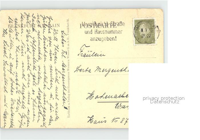 72110624 alte Postkarte Frankfurt Main Teilansicht postalisch gelaufen Erhaltung siehe scans KatCode: 11110006412000
