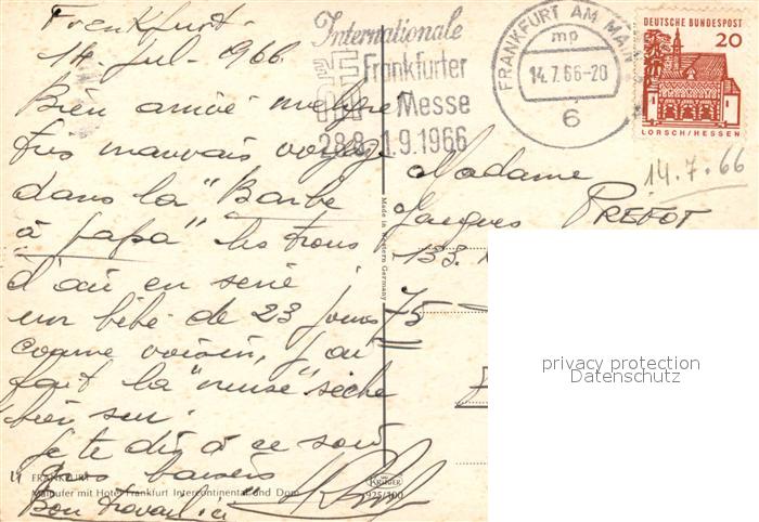 73295138 alte Postkarte Frankfurt Main Teilansicht postalisch gelaufen Erhaltung siehe scans [WerneD78] KatCode: 11110006412000