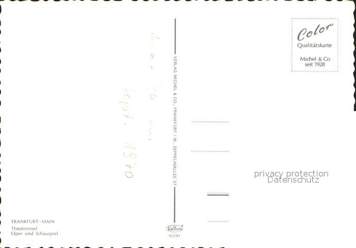 71993247 Frankfurt Main Theaterinsel Oper Schauspiel postalisch nicht gelaufen Erhaltung siehe scans KatCode: 11110006412000
