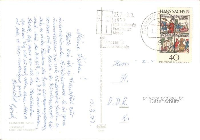 71939579 alte Postkarte Frankfurt Main Theaterinsel Oper und Schauspiel postalisch gelaufen KatCode: 11110006412000