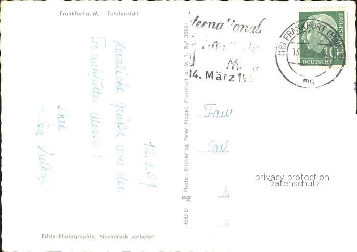 72040203 alte Postkarte Frankfurt Main Totalansicht postalisch gelaufen Erhaltung siehe scans KatCode: 11110006412000