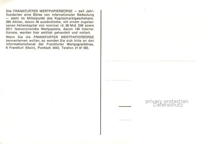 73016630 Frankfurt Main Wertpapierboerse postalisch nicht gelaufen Erhaltung siehe scans [WerneD78] KatCode: 11110006412000