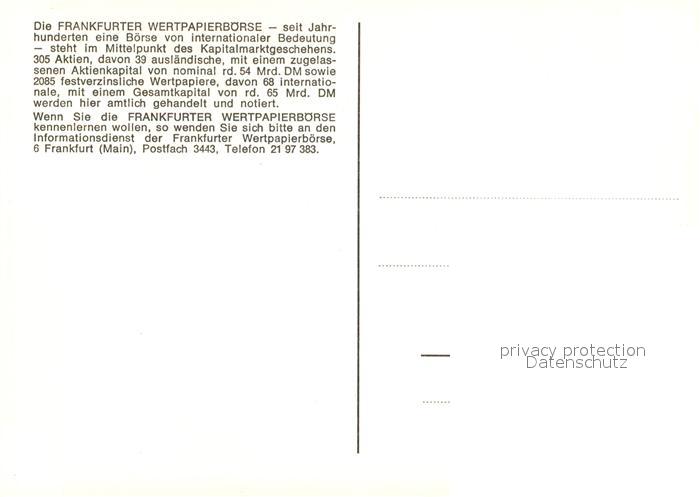 73208443 Frankfurt Main Wertpapierboerse postalisch nicht gelaufen Erhaltung siehe scans [WerneD78] KatCode: 11110006412000