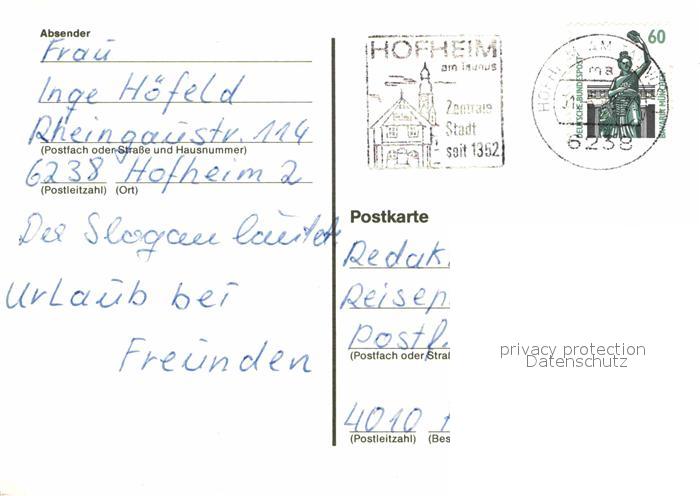 72705691 alte Postkarte Frankfurt Main Zeichnung Hoechster Schloss postalisch gelaufen Erhaltung siehe scans [AndreD76] KatCode: 11110006412000
